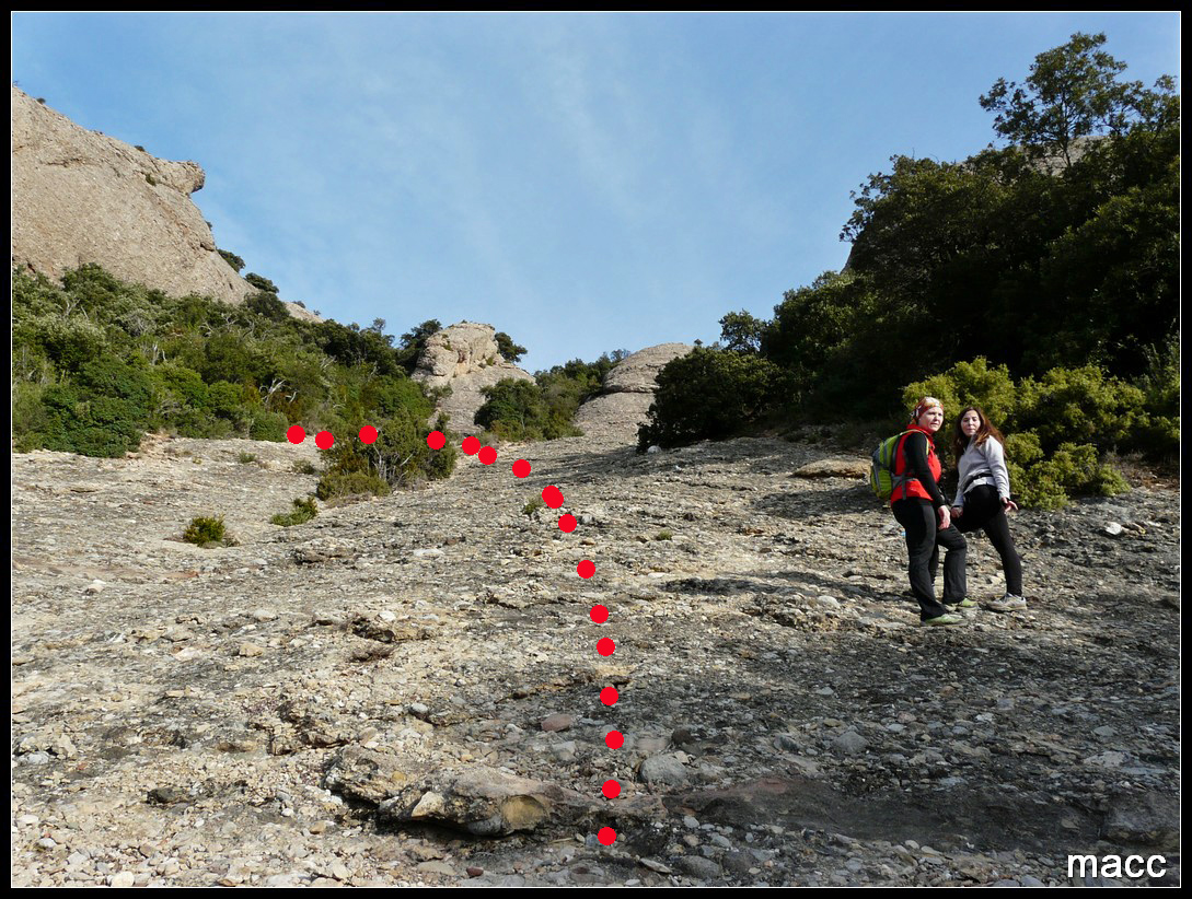 Un flanqueig típic de els camins de Montserrat, amb roca seca no hi ha problemas, amb roca humida tenim que anar amb molta cura.