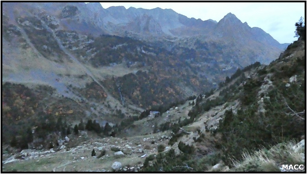 Pugem divendres a la tarda fins al Refugi d'Estós. La Vall d'Estós comença a vestir colors de tardor, aquí estic fotografiant la Cabanya de Santa Ana.